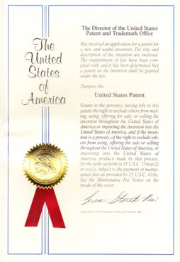 美国专利证书及发明专利首页