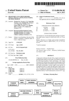 近日,由中国科学院上海硅酸盐所中试基地氧化碲组葛增伟、朱勇等人发明的《一种高纯二氧化碲单晶及其制备方法(High-purity Tellurium Dioxide Single Crystal and the Manufacturing Method Thereof)》正式获得美国专利商标局授予的专利授权(美国专利号:US 8480996 B2)。