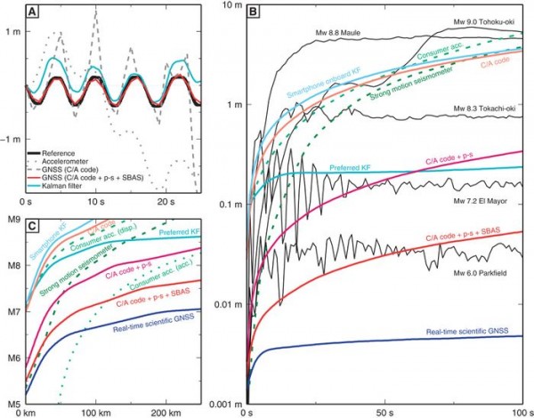 地震的提前预警无疑能够挽救很多生命,但是很多国家没有足够的资金来负担系统的运行。今天出版在《Science Advances》上的研究报告指出昂贵的现代化地震仪阵列可以由足够多的智能手机来替代,在地震发生之前提供核心关键的早期预警。在这份报告中将地震历史数据阿和现代化手机硬件(论文中基于Nexus 5)结合起来,展示了如何基于智能手机假设地震检测装置。
