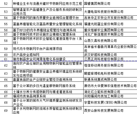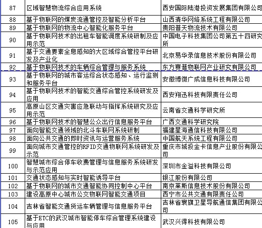 为促进我国物联网发展,依据财政部、工业和信息化部印发的《物联网发展专项资金管理暂行办法》(财企[2012]225号)、《关于做好2013年物联网发展专项资金项目申报工作的通知》(工信厅联科[2013]79号),工业和信息化部、财政部组织专家对申报的2013年物联网发展专项资金项目进行了审核。现将拟支持项目有关事项公示如下: